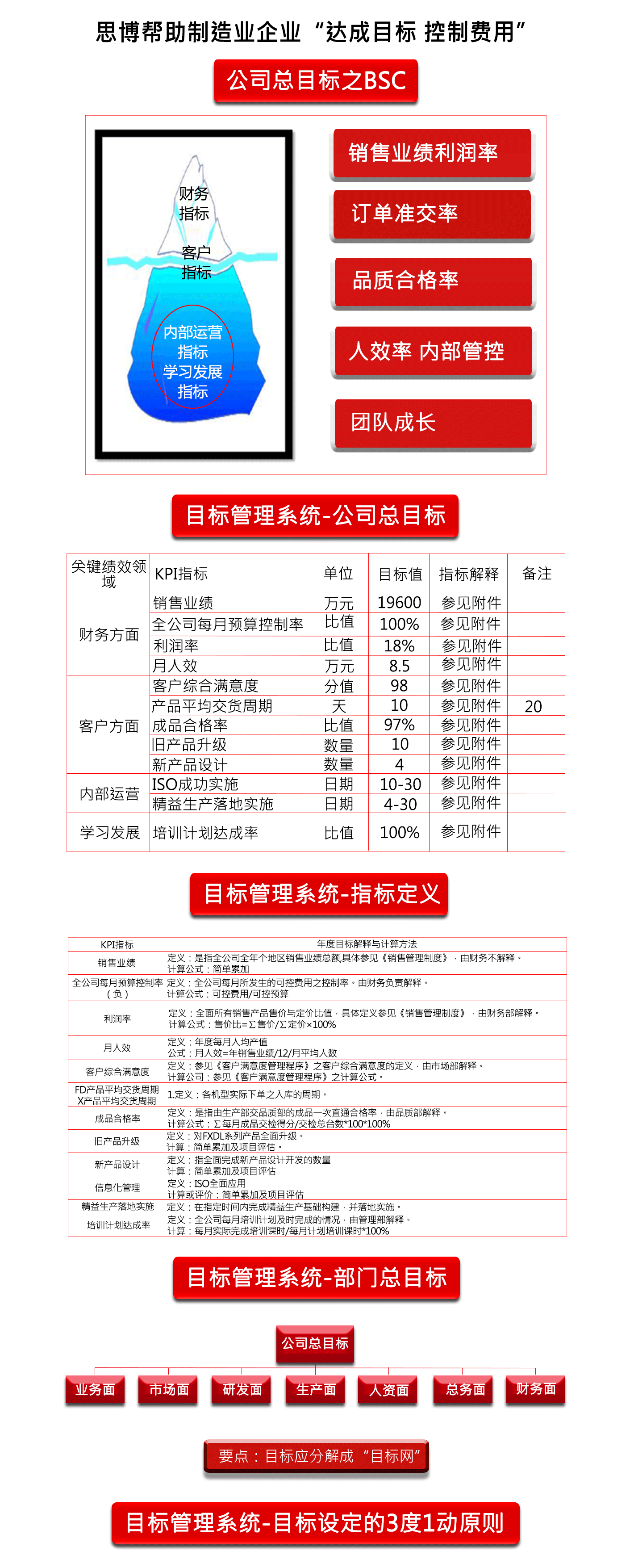 深圳市思博企業(yè)管理咨詢有限公司(sinbo) 是擁有多年管理實(shí)踐的實(shí)戰(zhàn)型管理咨詢企業(yè),思博數(shù)十人的咨詢師團(tuán)隊(duì)用近十年的時(shí)間潛心研究世界管理大師彼特·德魯克的目標(biāo)管理及臺(tái)灣陳宗賢教授的企業(yè)經(jīng)營(yíng)計(jì)劃管理,同時(shí)深入日本、臺(tái)灣、歐美等知名企業(yè)學(xué)習(xí)先進(jìn)管理理念及技能,結(jié)合中國(guó)企業(yè)本土化的特點(diǎn),成功研究出一套適合中國(guó)國(guó)情的企業(yè)經(jīng)營(yíng)管理系統(tǒng)《企業(yè)年度經(jīng)營(yíng)計(jì)劃與全面預(yù)算管理》。該系統(tǒng)在思博團(tuán)隊(duì)的潛心指導(dǎo)下,已成功幫助中國(guó)數(shù)百家企業(yè)實(shí)現(xiàn)年業(yè)績(jī)?cè)鲩L(zhǎng)40%